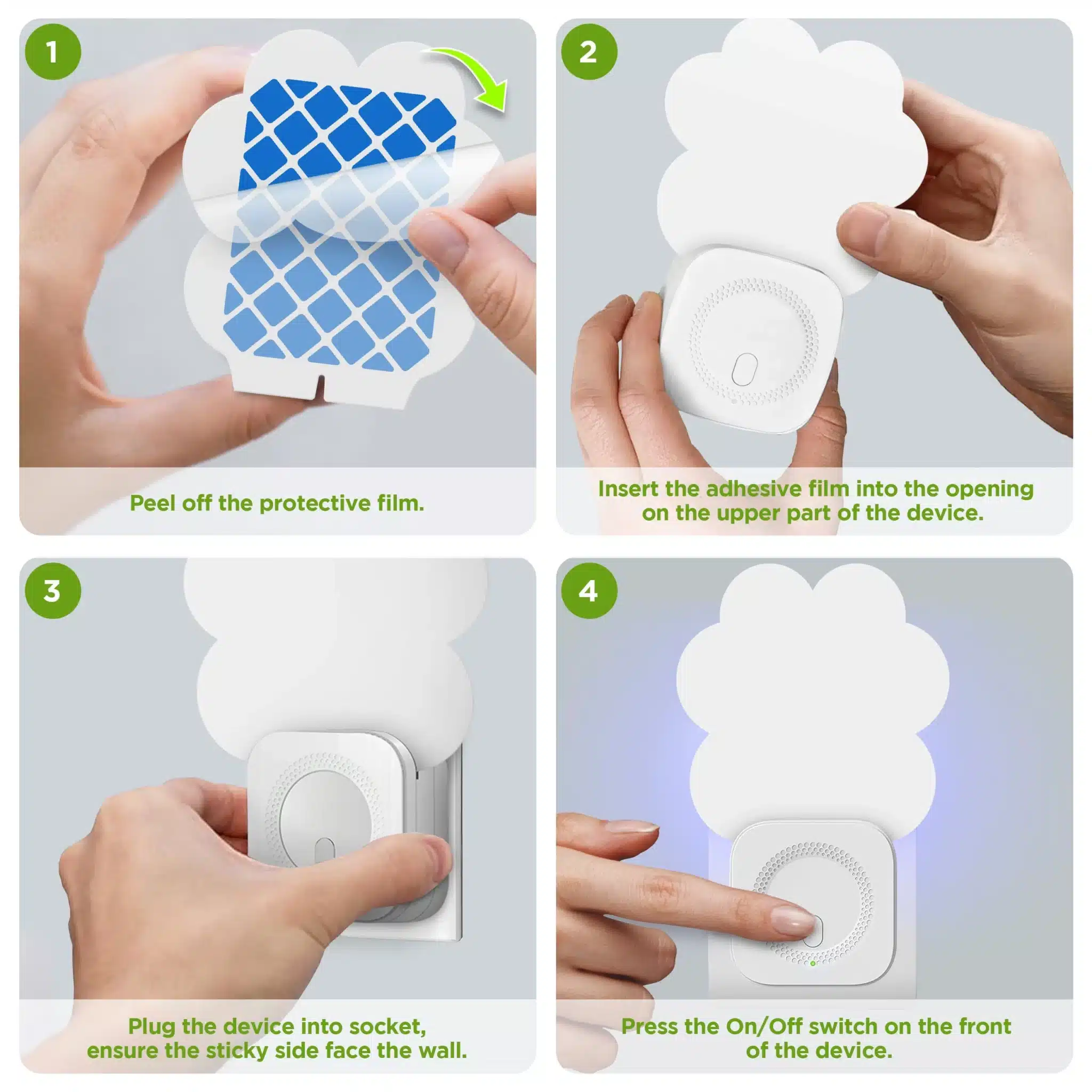 Po prilákaní sa hmyz zachytí na výmennej lepiacej fólii, ktorá sa nachádza na zadnej strane prístroja.