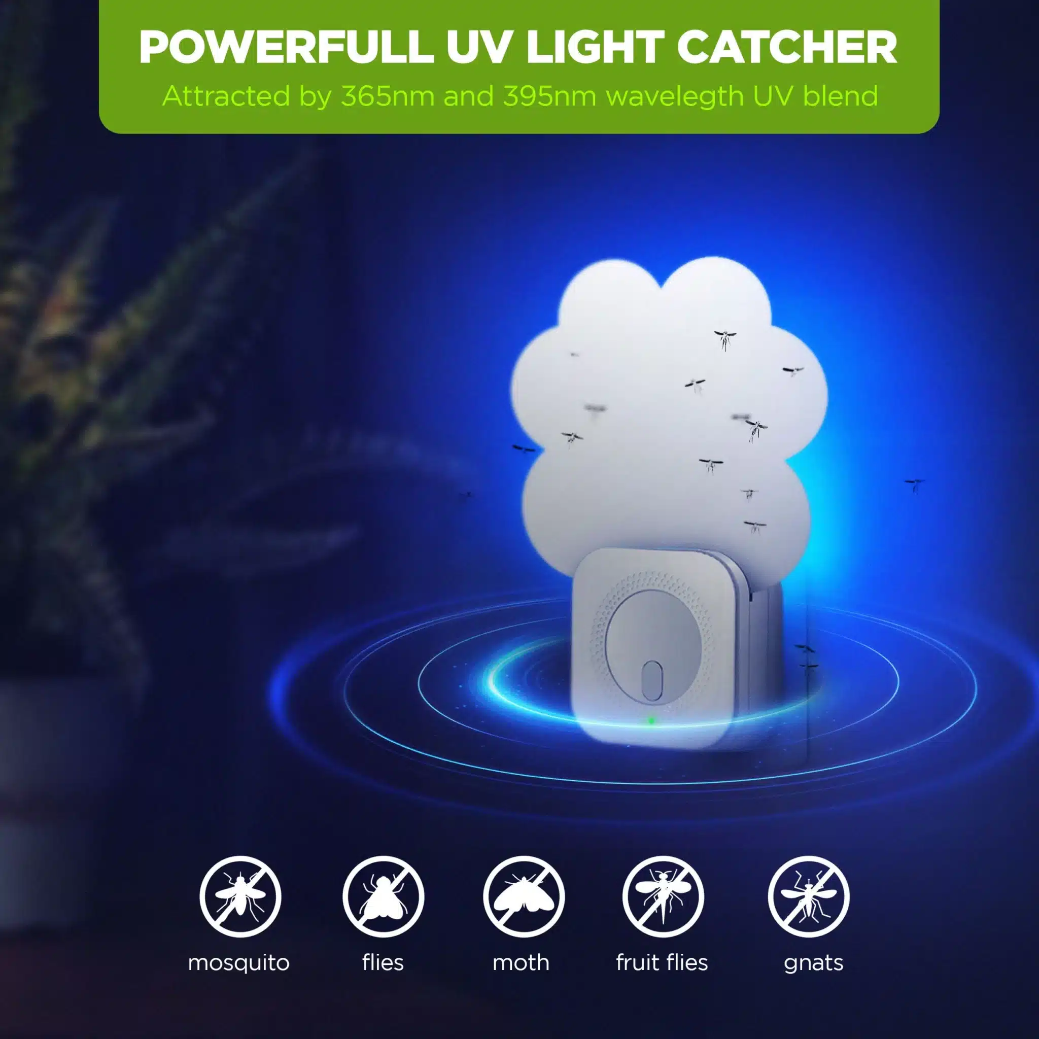 Využíva modré UV svetlo, ktoré účinne priláka lietajúci hmyz, ako sú komáre, ovocné mušky či smútnice.