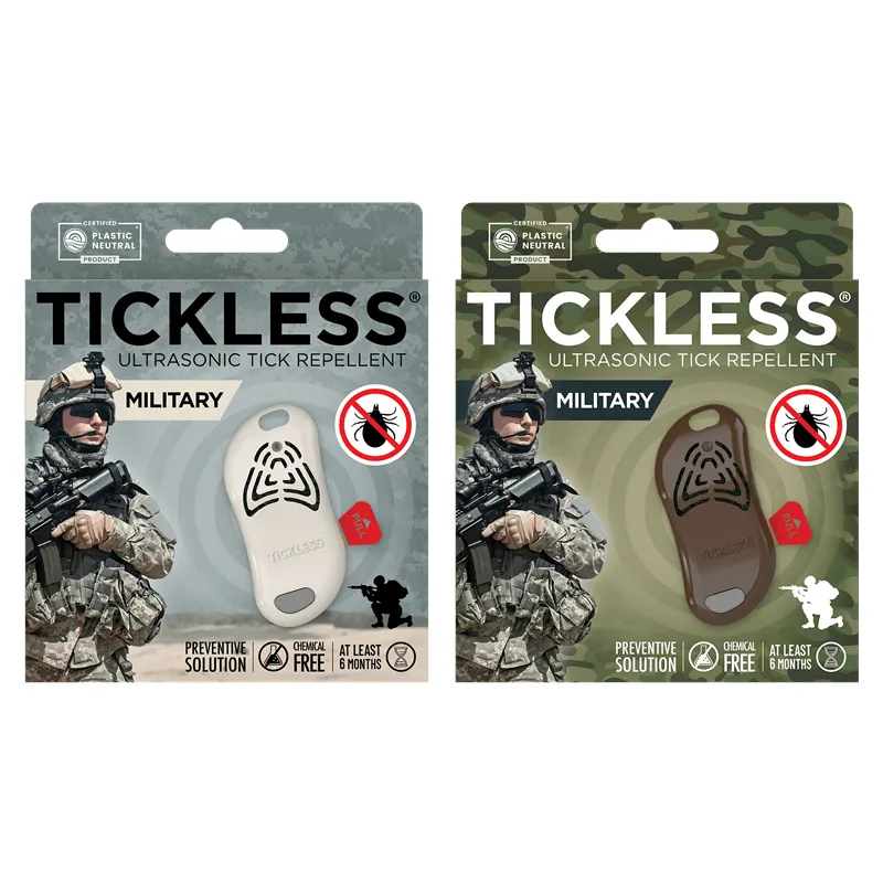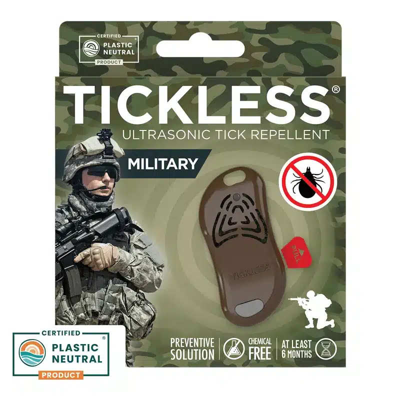 TICKLESS® Military Brown je spoľahlivé riešenie pre každého, kto trávi čas v prírode. Vojaci, poľovníci, turisti a kempingoví nadšenci ocenia jeho maskáčové hnedé prevedenie, ktoré je nenápadné a praktické.